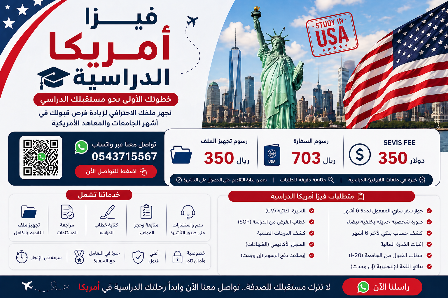 طلب تأشيرة دراسة أمريكا طلب تأشيرة دراسة أمريكا – قبولك يبدأ من هنا