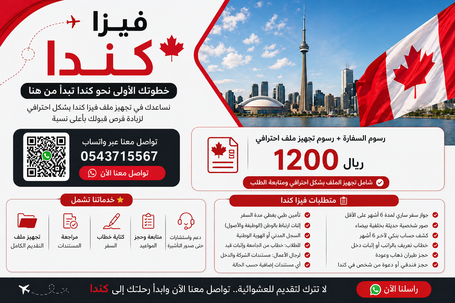 طلب فيزا كندا حجز فيزا كندا بدون مقابلة – الرياض • جدة •