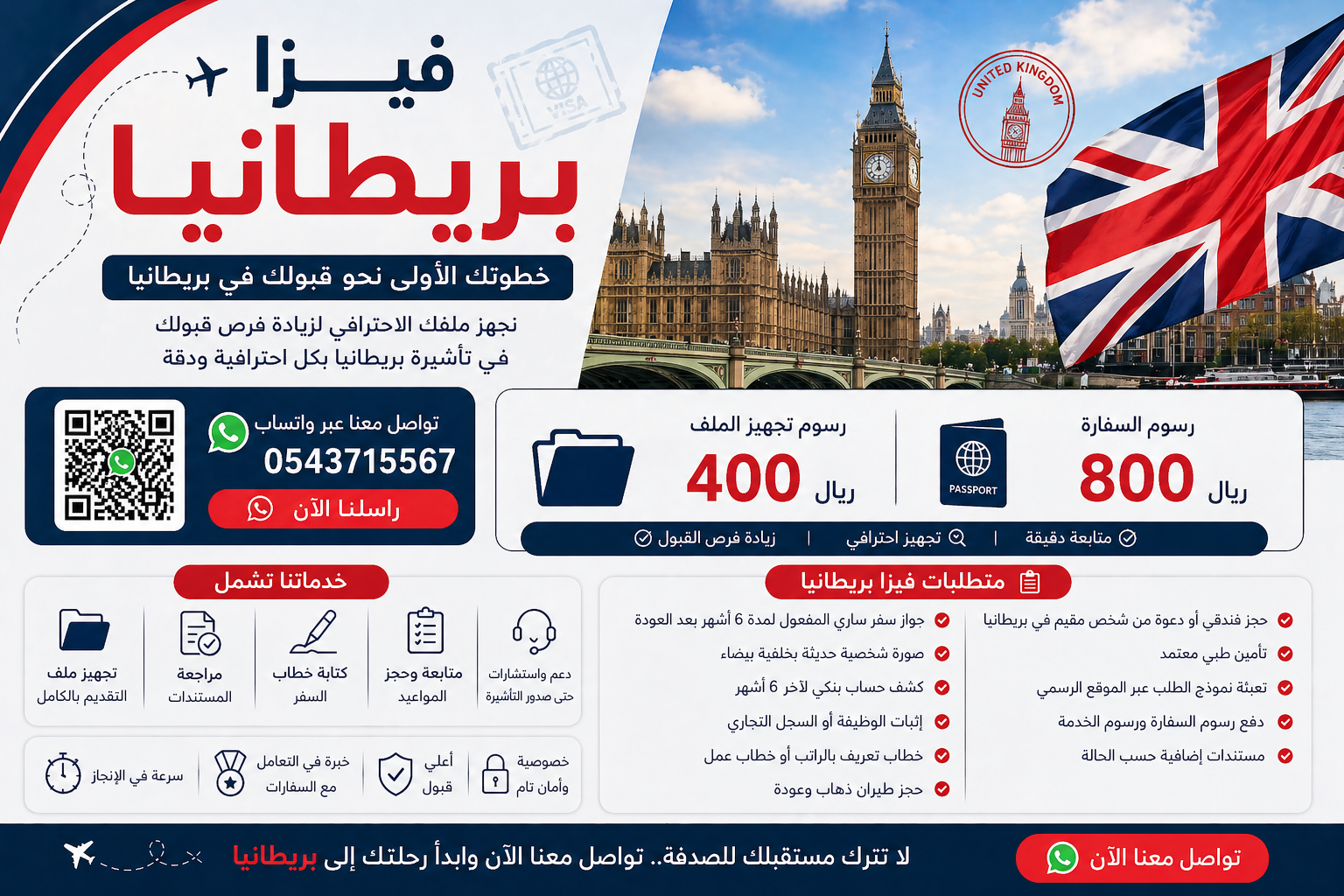 طلب تأشيرة بريطانيا طلب تأشيرة بريطانيا – قبولك يبدأ من هنا أسرع خدمة